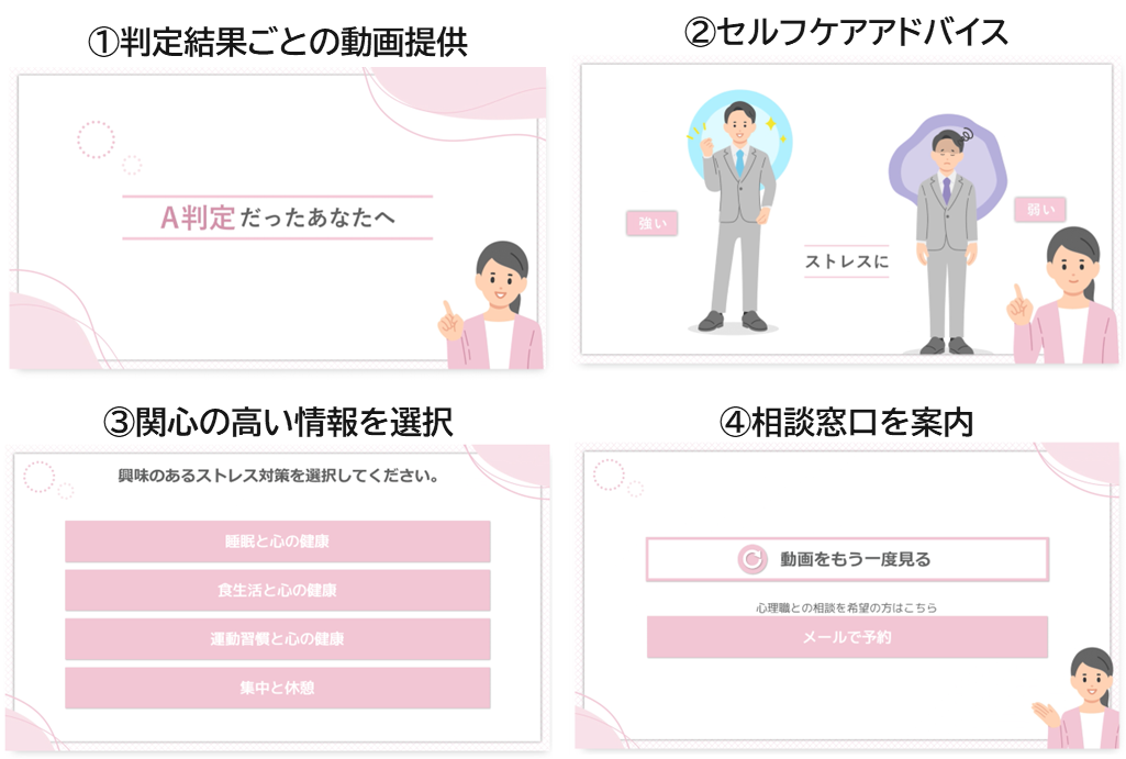 人事担当者からは「高ストレス者だけでなく、軽度の不調者にも届く仕組み」「従業員との面談前に動画を通じて理解が深まった」といった声が寄せられています。