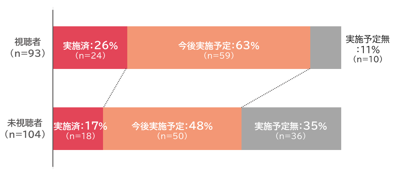 具体的には、「すでに実施した」「今後実施予定」と回答した割合の合計が89%と、未視聴者の65%を24ポイント上回りました。